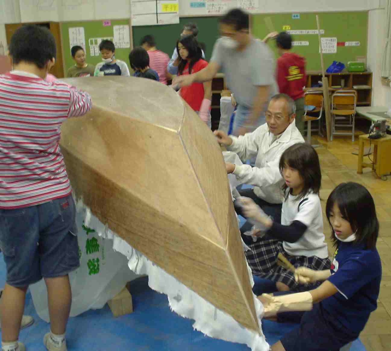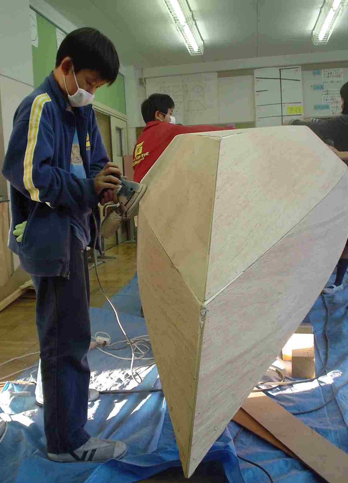 ペーパークラフトの段階から子供たちでここまで作り上げました。