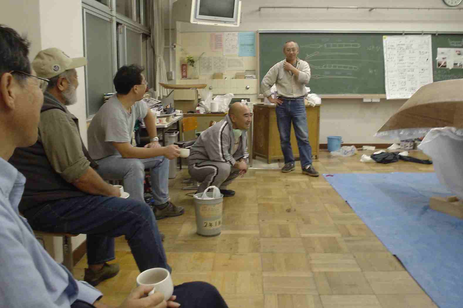 そして、組立て作業(針金でしばりながら組立てる方法を採用)がありました。