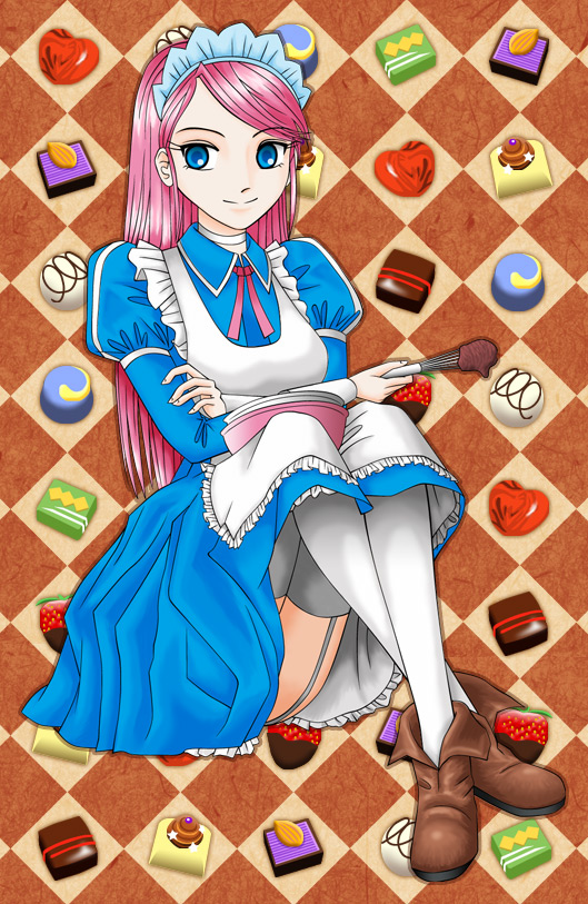 多分メイドじゃなく、お店の店員なんだろう。ゲーム自体は同じチョコを3つ並べて